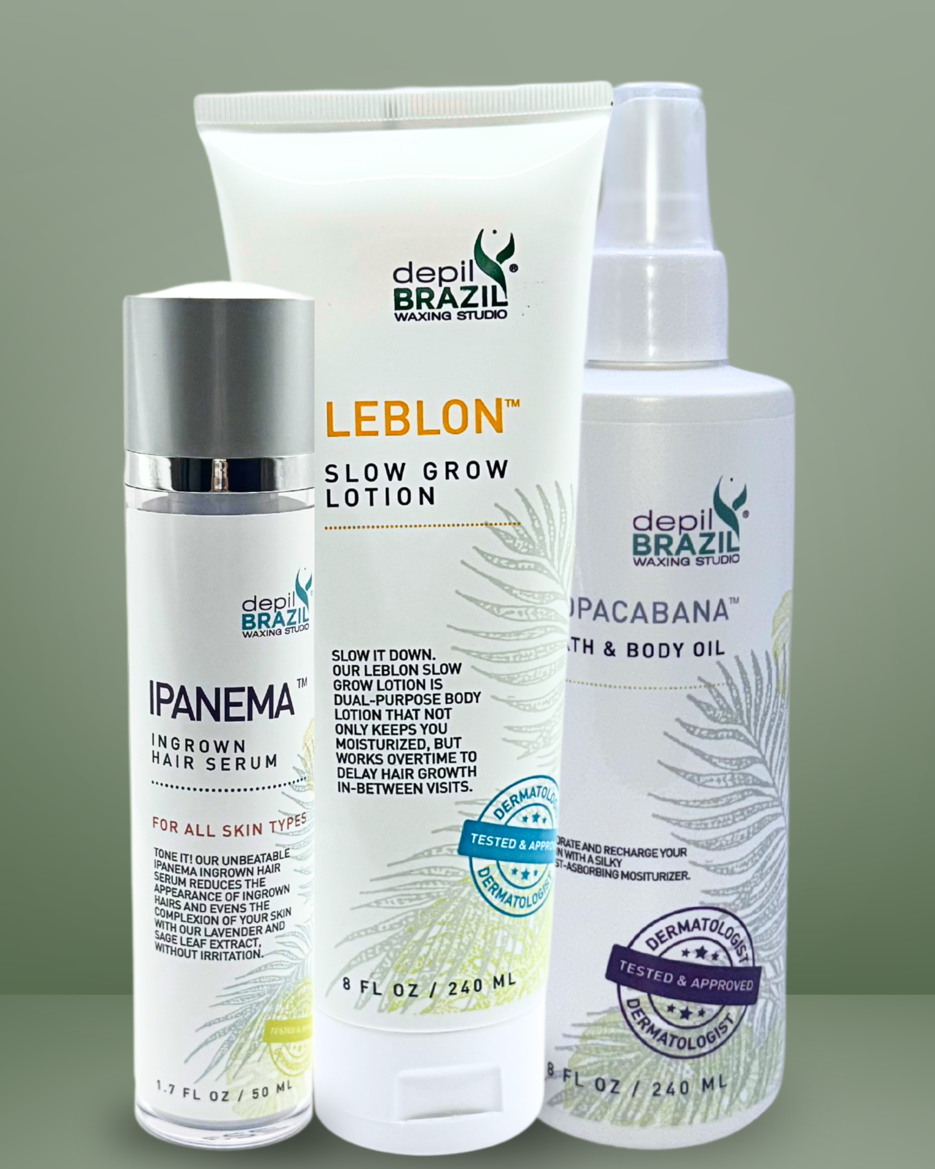 Includes: Ipanema Ingrown Hair Serum, Leblon Slow Grow Lotion, and Copacabana.