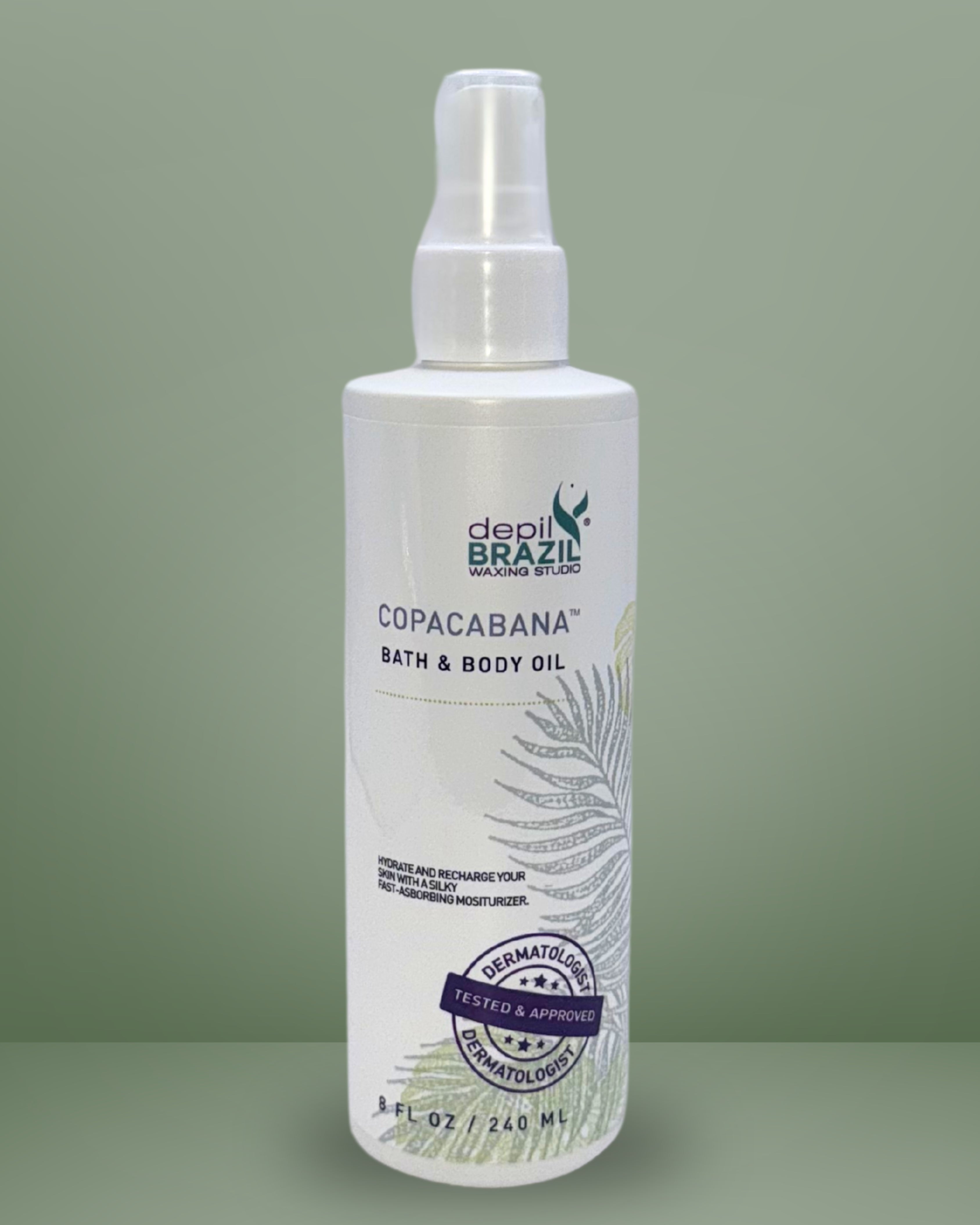 Copacabana Body and Bath Oil: This Brazilian formula is made with natural ingredients that lock in up to 10 times more moisture on wet skin than ordinary lotion can on dry skin, leaving skin soft and silky smooth. This lightweight, fast-absorbing formula is enriched with natural cherry and grape seed oils, two ingredients known for their relaxing and soothing properties. These natural oils provide long-lasting moisture to dry skin, as well as antioxidants to aid in free radical damage.